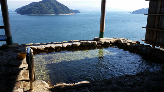 오사키카미지마쵸의 온천 숙박지 청풍관(淸風館)에서 바라본 세토내해 바다. 필자 촬영