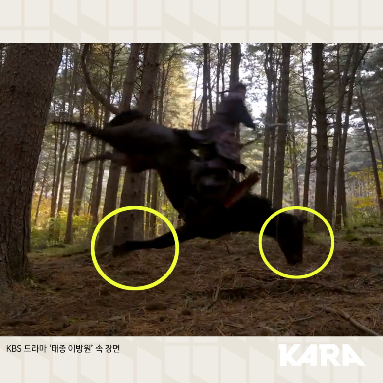 촬영 중 쓰러진 말(까미)과 스턴트맨 (2022년) 출처: 동물행동권 카라