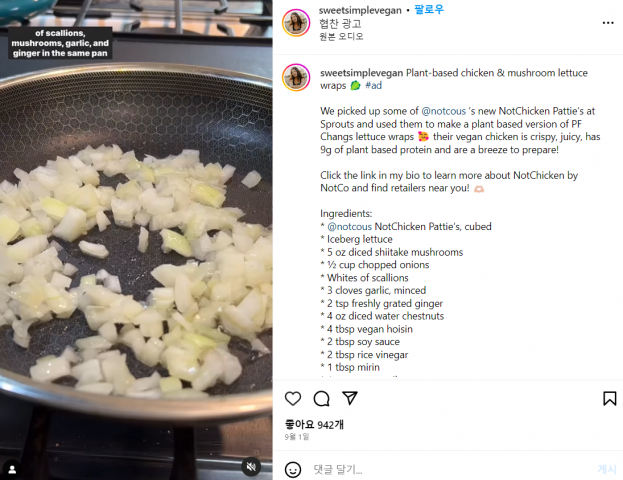 한 비건 인플루언서가 Plant-based 음식을 네티즌에게 소개하고 있는 포스트 ⓒ @sweetsimplevegan