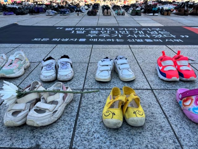 모든 희생자를 애도하는 신발들의 시위
