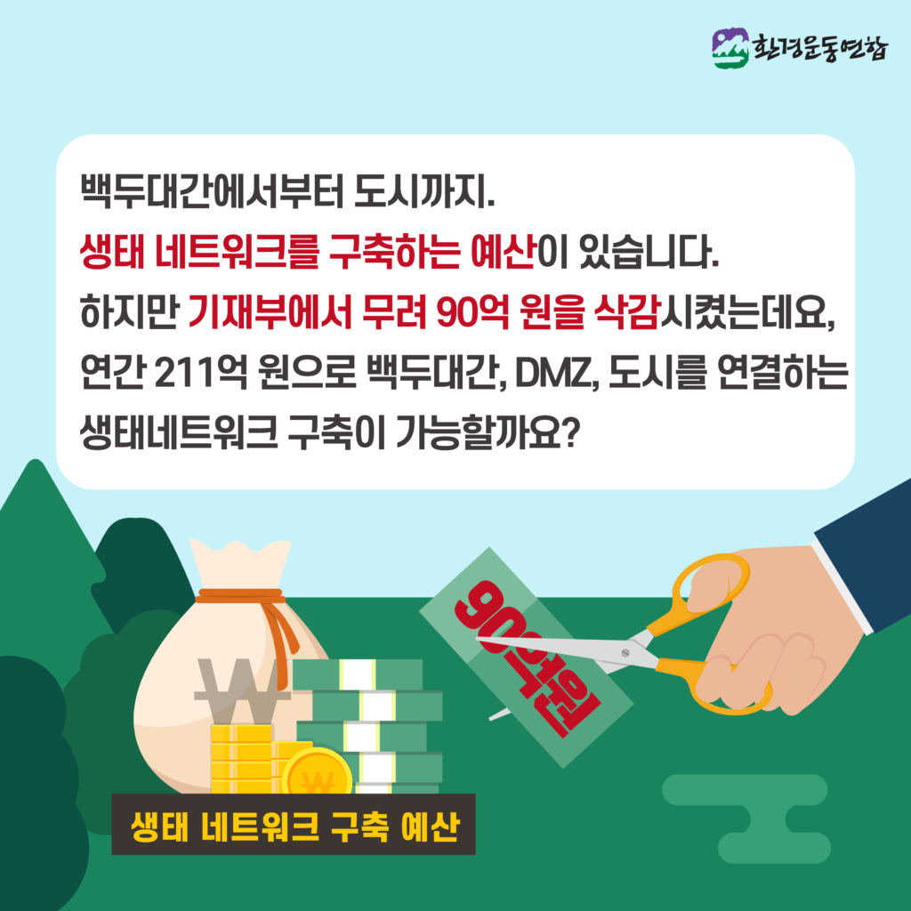 근데….기재부에서 90억원이나 삭감시켰네요…? 연간 211억원으로…도시와 백두대간을 연결할 수 있을까요….?