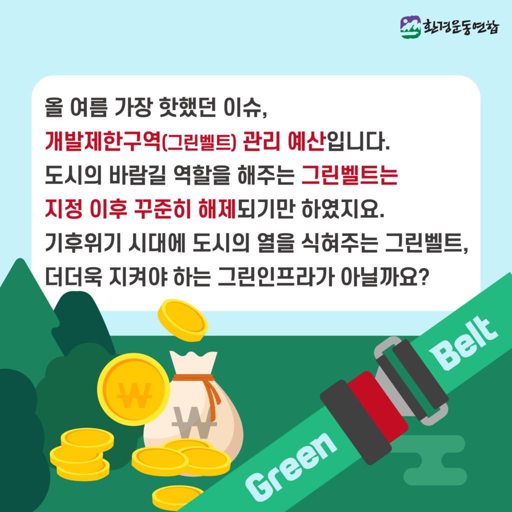 기후위기 시대에 바람길로 도시의 열을 식혀주는 그린벨트, 더욱 적극적으로 국가에서 매입을 해야하지 않을까요?