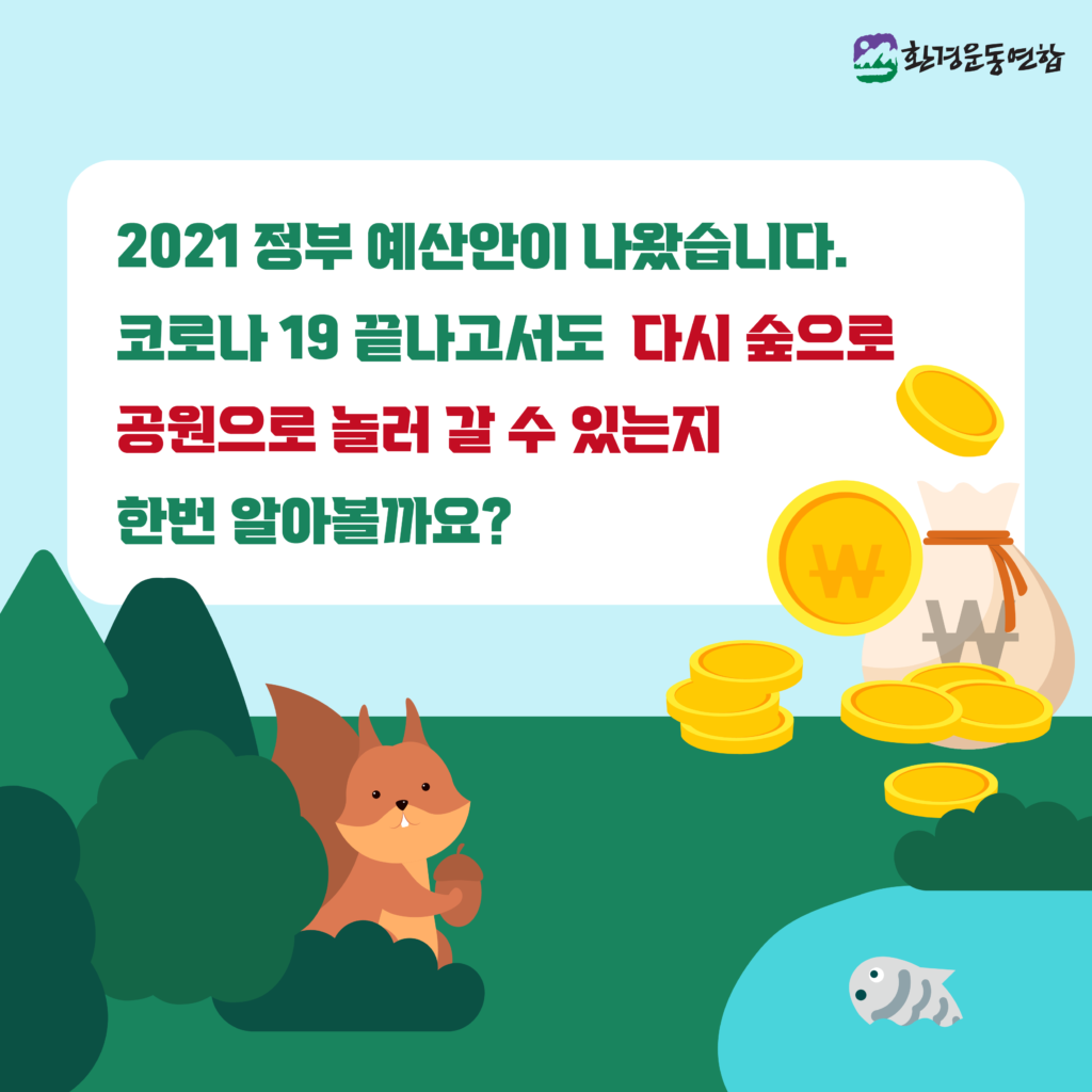 더 자세한 내용이 알고 싶다면 → [보도자료] 환경운동연합, “2021년 정부 예산, 기후위기 예산 7,629억 원 증액 필요”