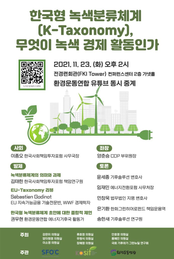 ‘한국형 녹색분류체계(K-Taxonomy), 무엇이 녹색경제활동인가’ 토론회