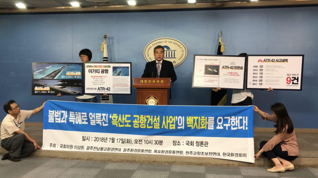 17일 오전 환경운동연합을 비롯한 환경회의 등 5개 시민환경단체와 이상돈국회의원은 서울 여의도 국회 정론관에서 흑산도 공항건설 사업의 백지화를 촉구했다.