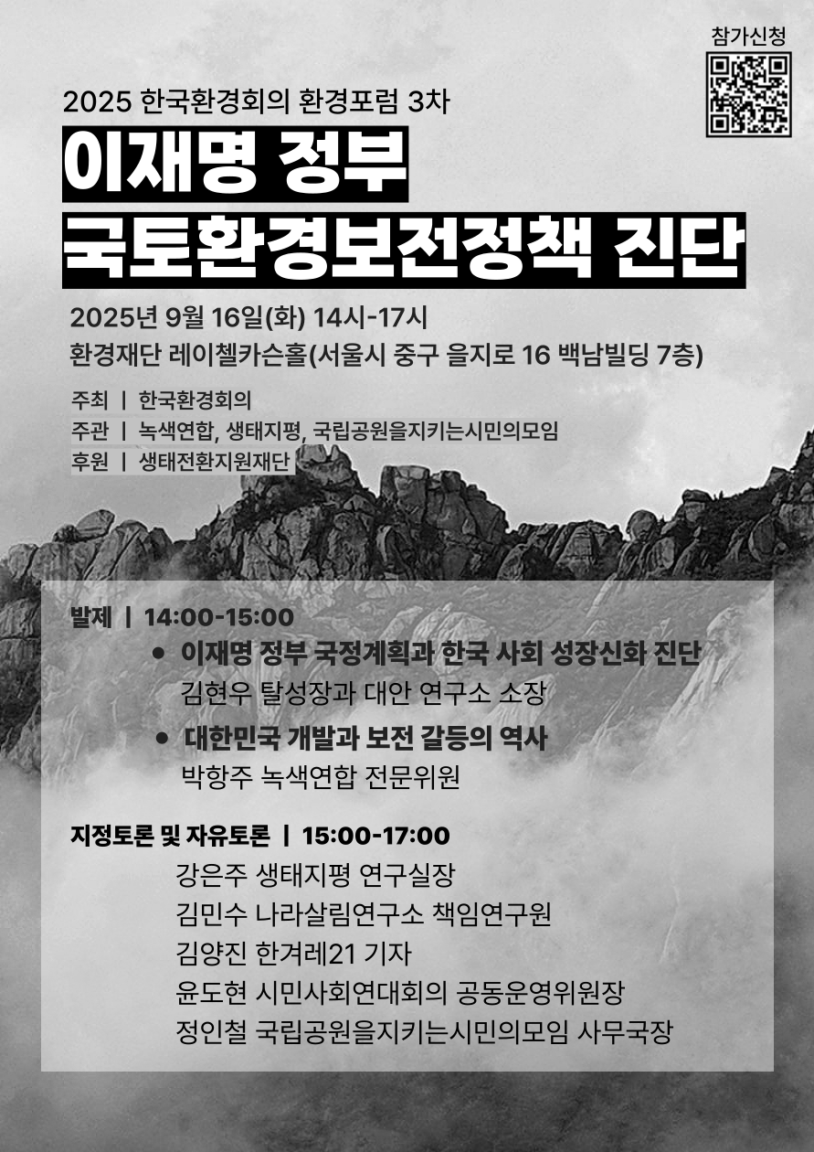한국환경회의는 환경포럼을 통해 토건으로 이뤄낸 회색 성장의 역사와 환경운동으로 이뤄낸 변화와 과제, 우리 사회의 지속가능성을 위한 새로운 패러다임을 고민하고자 합니다. 많은 분들의 관심과 참여를 바랍니다.