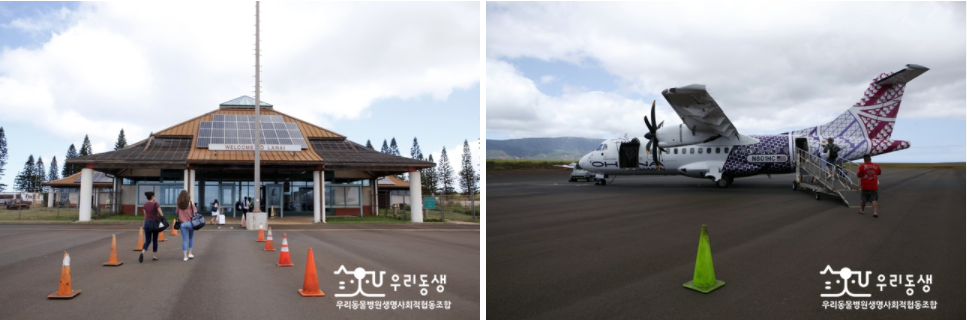 라나이 섬 공항(왼쪽)과 하와이안 에어리안 경비행기 (오른쪽)© 박나윤 우리동생 조합원