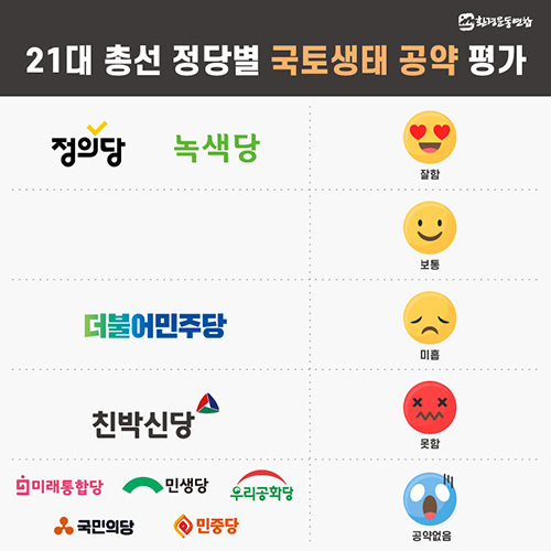 ※ 자세히 보기 : [보도자료] 21대 총선 공약에서 생태보전 정책 실종