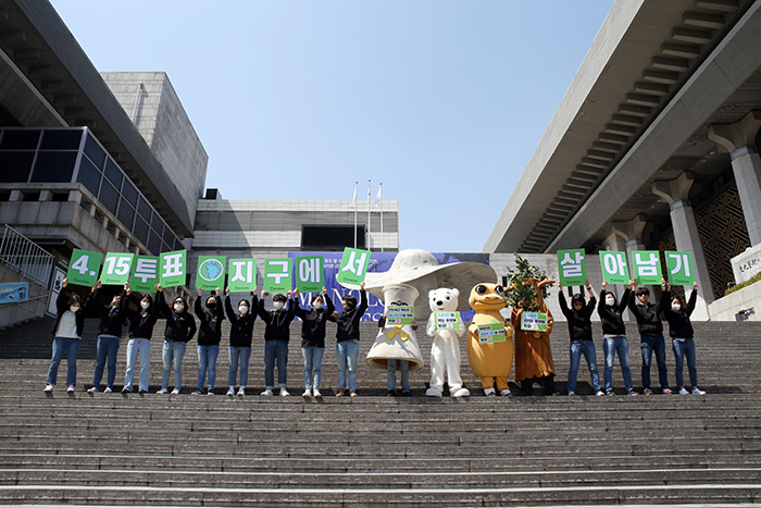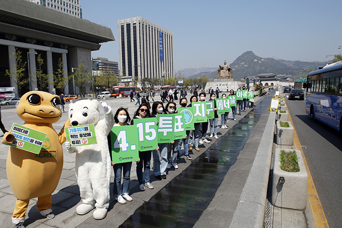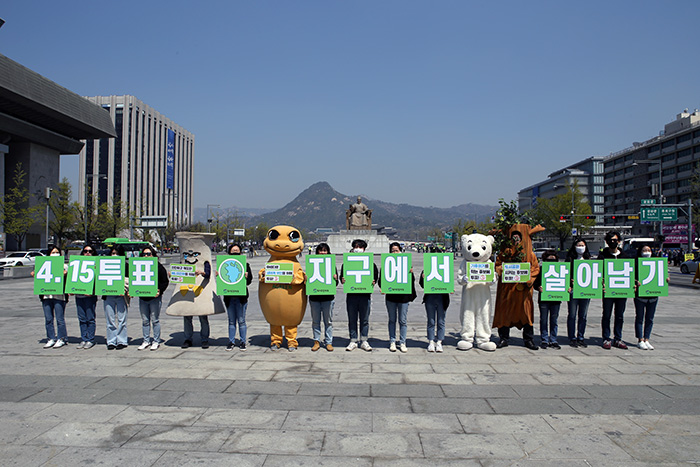 환경운동연합, ‘4.15투표로 지구에서 살아남기’퍼포먼스 벌여