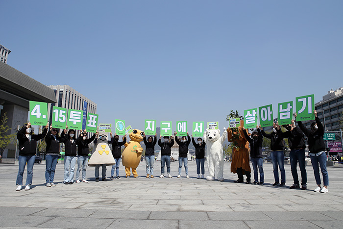 ◯ 최준호 환경운동연합 사무총장은 “기후위기로 벼랑 끝에 내몰리는 것은 비단 북극곰만이 아니다”라며, “기후위기는 인류와 지구생명공동체가 지구에서 살아남는가에 관한 문제이며, 이번 투표는 한국사회가 기후위기에 대응할 수 있는 골든타임이 될 것”이라고 강조했다.