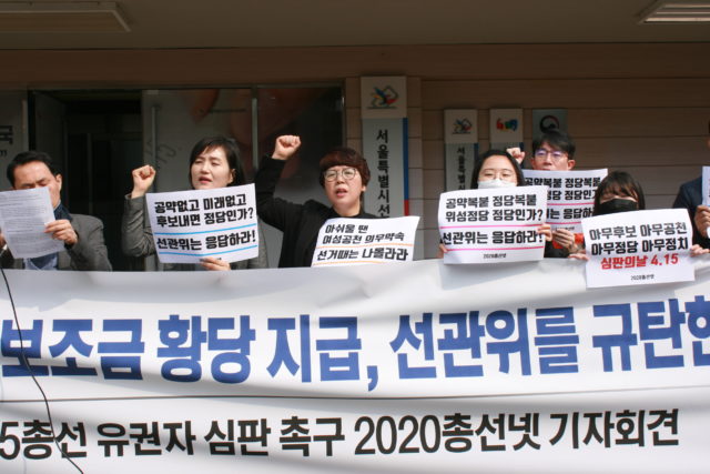 1일 2020총선시민네트워크가 선관위 서울사무소 앞에서 기자회견을 열었다. ⓒ환경운동연합