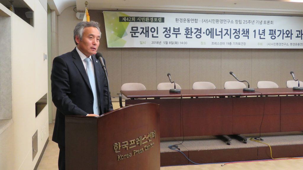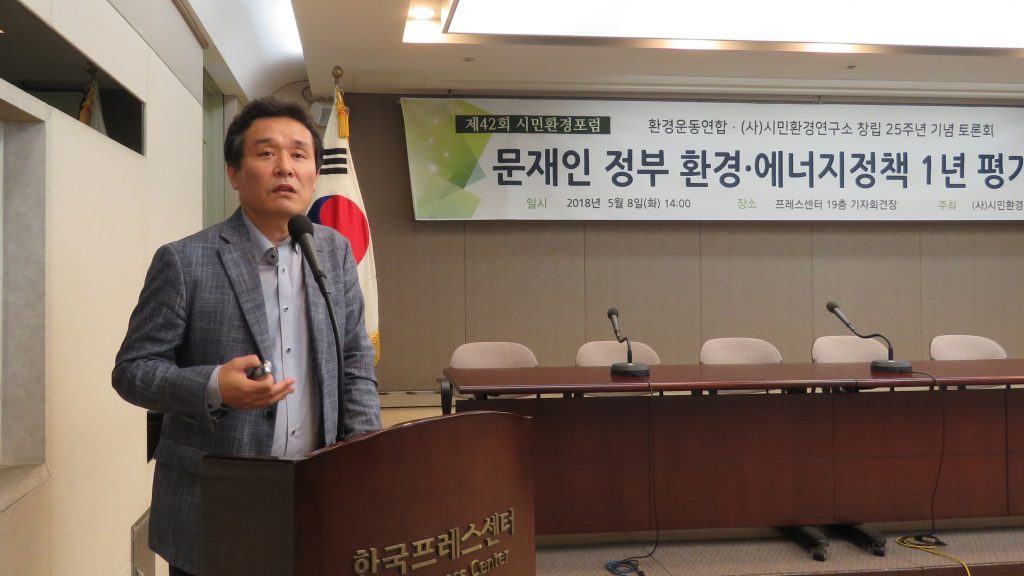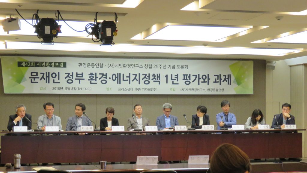 이날 토론회에서는 새정부 1년 에너지정책, 미세먼지 저감대책, 화학물질 관리정책, 4대강 복원과 물 관리 정책 등에 대한 발표도 진행됐다.