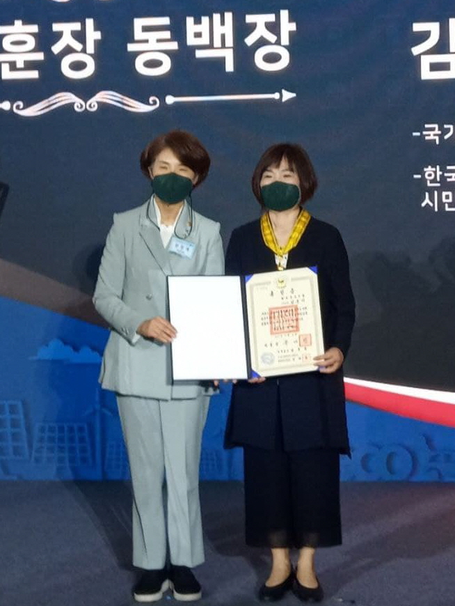 환경운동연합 김춘이 사무총장이 지난 4일 ‘제26회 세계 환경의 날’을 맞아 환경 보전을 위해 힘써온 그간의 공로를 인정받아 환경보전 유공 훈장(국민훈장 동백장)을 수훈했다.
