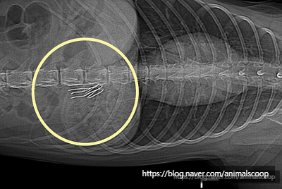 검사 결과, 철사로 추정되는 날카로운 이물질이 발견되었어요
