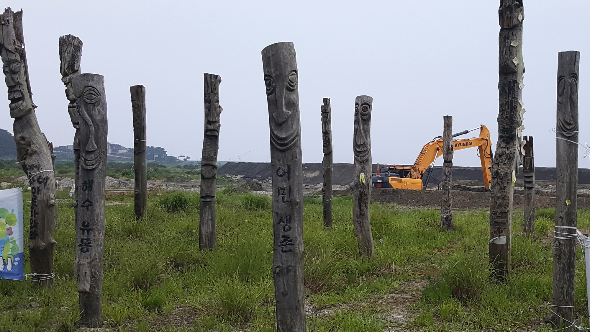 장승 뒤편 갯벌은 세계 스카우트 잼버리 야영지를 만들기 위해 성토작업이 한창이었습니다. 새만금 사업단은 장승벌 앞으로 잼버리 행사장 길을 낼 계획이라고 합니다. 이제는 20년간 그곳을 지켜온 장승마저 쫓겨날 위기에 처해있습니다. 그나마 남아있던 장승마저 없어진다면 그동안 투쟁해온 환경운동역사의 한 페이지가 흔적도 없이 사라지게 될 것입니다.