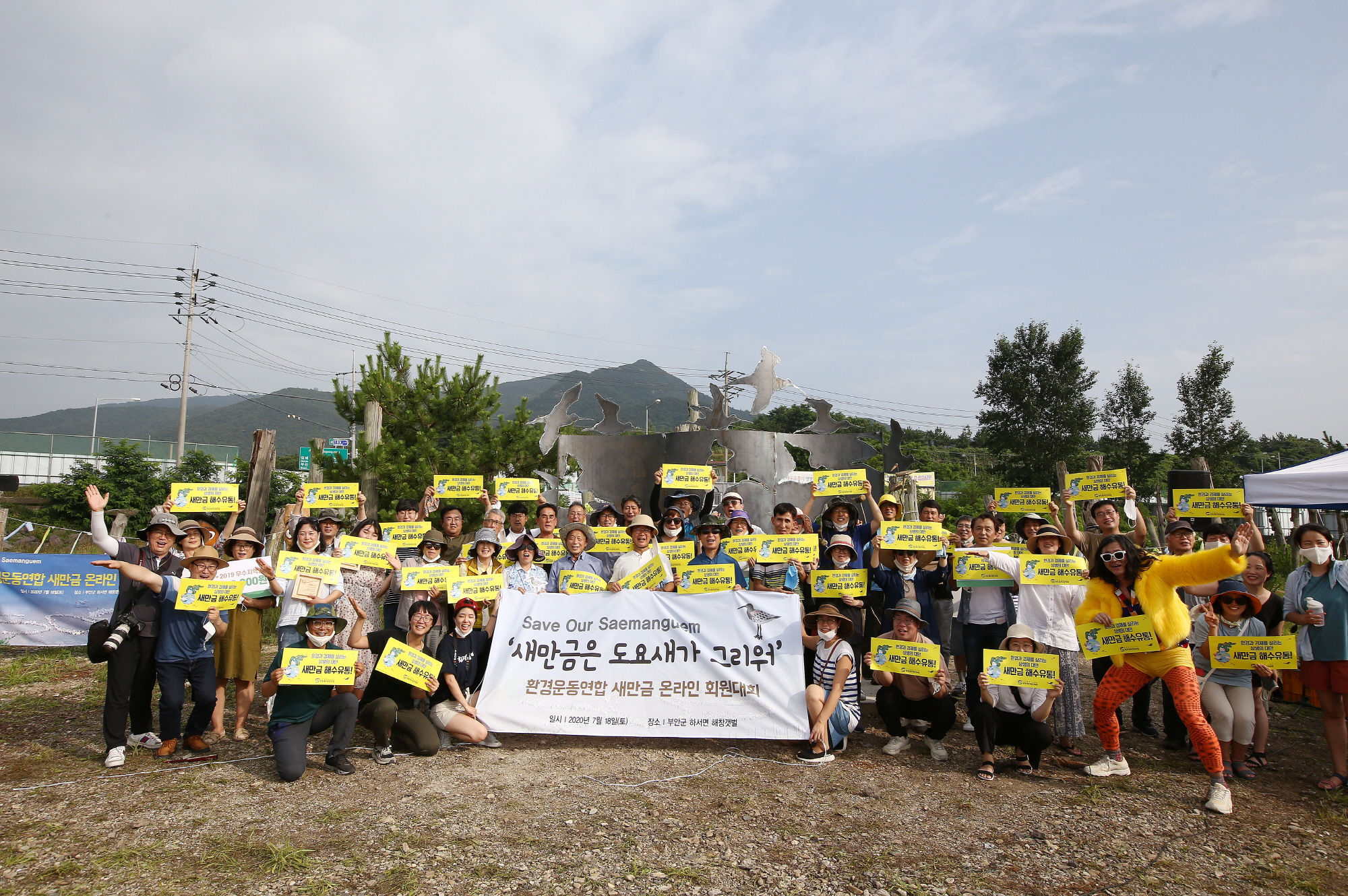 2020년 7월 18일 새만금 해창갯벌(장승벌)에서 환경운동연합 온라인 회원대회가 열렸다.ⓒ함께사는길