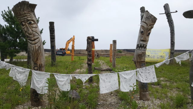 장승벌 뒤로 세계스카우트 잼버리행사장 공사가 진행되고 있다.ⓒ환경운동연합