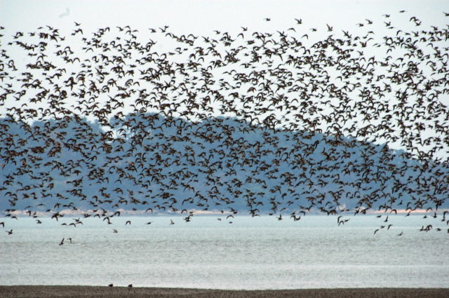 새만금 물막이 공사 전 새만금 일대를 찾은 도요새들.ⓒ함께사는길