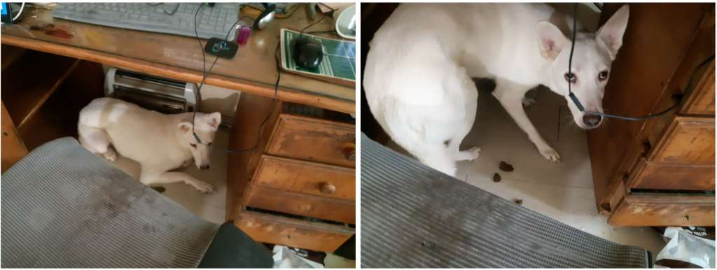 특히 상태가 심각했던 것은 나이가 제일 어린 1살 된 백구였습니다. 백구를 집으로 데리고 온 지인의 도움으로 중성화 수술은 완료되었지만, 반려인은 백구를 키우는 것을 너무 힘들어하고 있었습니다. 반려인은 단 한 번도 목욕이나 산책 등 기본적인 반려견 돌봄을 하지 않았으며 동물병원 이동 또한 어려워하여 반려견 행동교육 지원이 어렵다고 안내를 하였습니다.