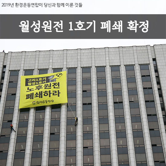 이제 월성1호기는 고리1호기에 이어 한국에서 두번째로 폐쇄되는 핵발전소가 되었습니다. 환경운동연합은 앞으로도 위험한 원전을 멈추고, 태양과 바람으로 움직이는 안전한 세상을 위해 더욱 더 열심히 활동하겠습니다.