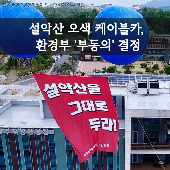 5가지 보호구역으로 보호받으며 많은 동식물들의 서식처가 되어주는 설악산. 우리가 등산하며 설악산을 즐기는 이유도 그 곳의 보전된 자연환경이 아름답기 때문일 것입니다. 지난 4년간 강원도 양양군은 이 설악산에 케이블카를 놓기 위해 여러 탈법과 불법을 저지르며 사업을 강행하려 했습니다. 이에 환경운동연합과 속초고성양양환경연합은 지역과 중앙의 단체들과 연대해 설악산 케이블카를 막기 위해 노력해왔습니다.