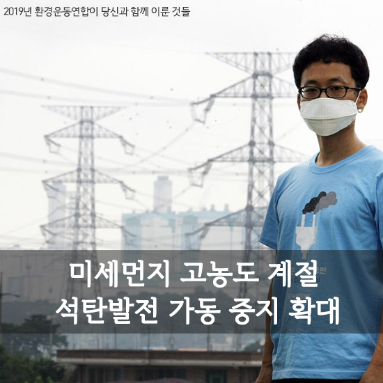 여기서 더 나아가 미세먼지 문제 뿐 아니라 기후위기의 상황을 고려하면 석탄발전소는 운영 중단을 넘어 더 적극적인 퇴출 정책이 필요합니다. 이번 국가기후환경회의에 참여한 국민참여단 대다수도 석탄발전소 중단으로 인한 전기요금 추가 부담을 감내할 수 있다고 발표한 만큼, 전기요금의 합리적인 개편과 석탄발전소의 폐쇄를 위한 로드맵이 함께 마련되길 바랍니다.