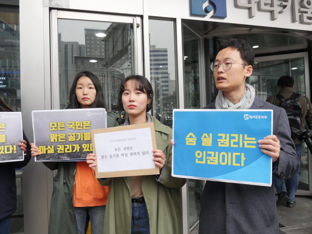 환경운동연합은 3월 20일 오전 미세먼지가 국민 기본권을 침해하는 것으로 실효성 있는 미세먼지 대책이 마련되어야 한다며 국가를 피진정인으로 하는 진정서를 국가인권위원회(이하 인권위)에 제출하고 기자회견을 열었다.
