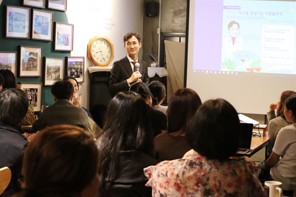 ▲ ‘아직도 채식을 망설이는 사람들에게’란 주제의 이의철 직업환경의학 전문의 강연 ⓒ 진주보라