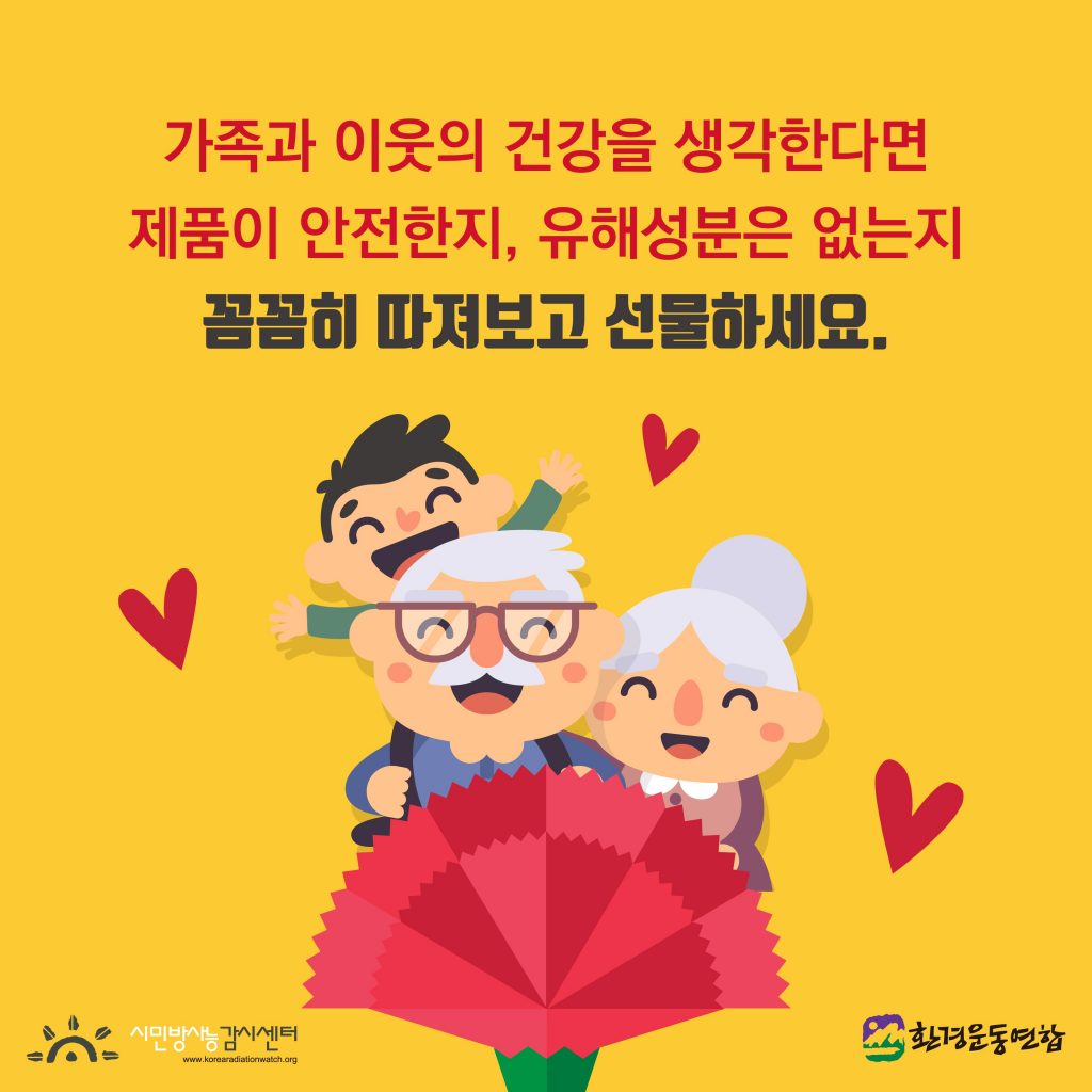 가족과 이웃의 건강을 생각한다면 제품이 안전한지, 유해성분은 없는지 꼼꼼히 따져보고 선물하세요.