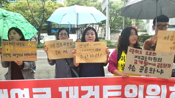 이에 고준위핵폐기물전국회의를 비롯한 탈핵관련 시민단체들은 강남 삼성동의 재검토위 사무실 앞에서 기자회견을 열고 “지역주민과 시민사회단체 등 주요 이해당사자를 배제한 채 일방적으로 구성된 재검토위를 해체하라”고 촉구했습니다.