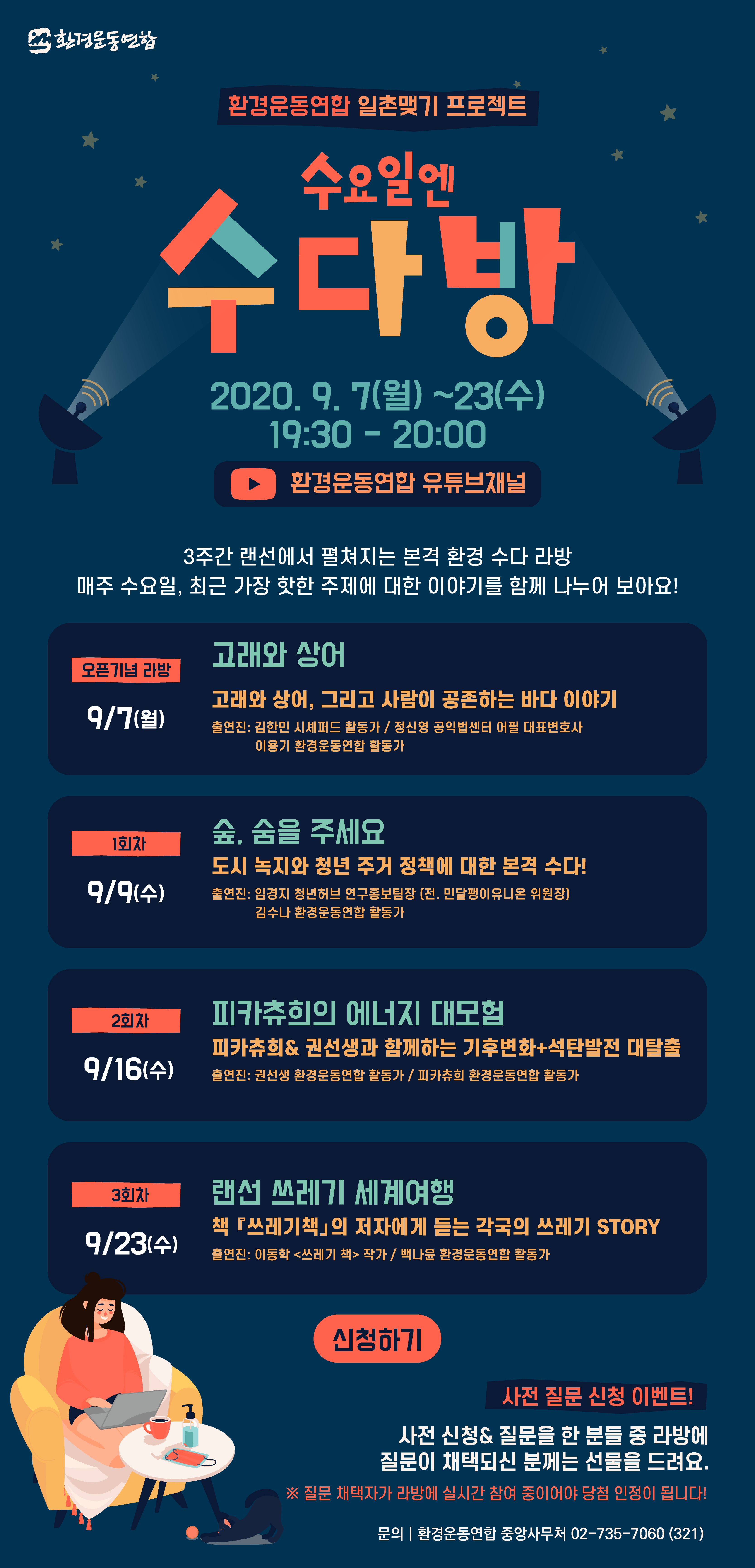매주 수요일 19:30~20:00, 환경운동연합 유튜브에서!