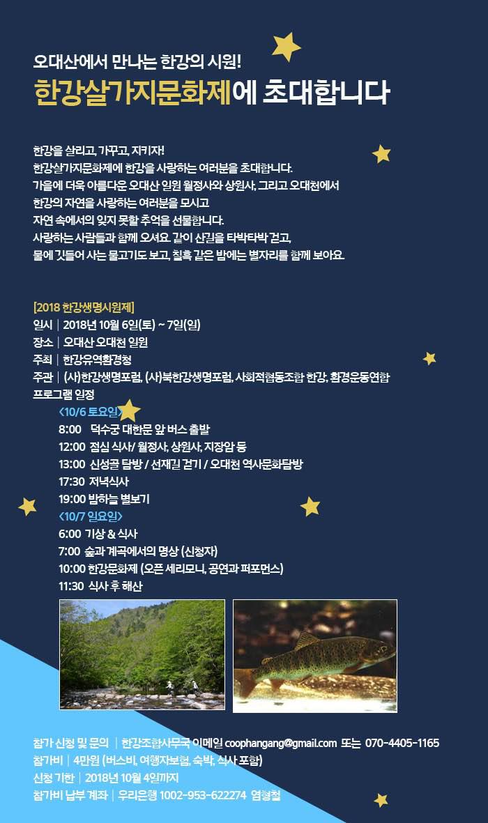 오대산에서 만나는 한강의 시원! 한강살가지문화제에 초대합니다.
