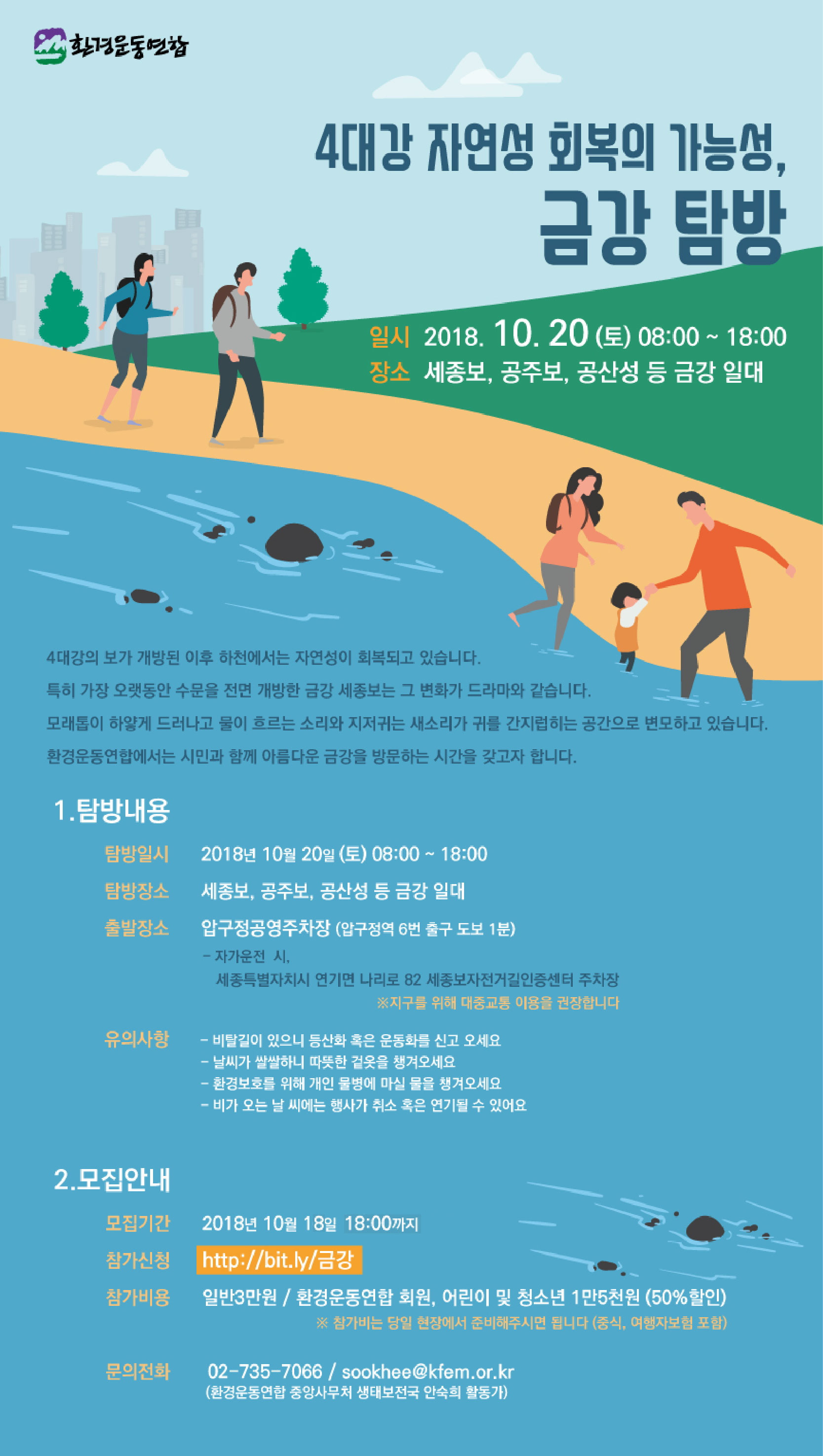 환경운동연합에서는 시민과 함께 아름다운 금강을 방문하는 시간을 갖고자 합니다.