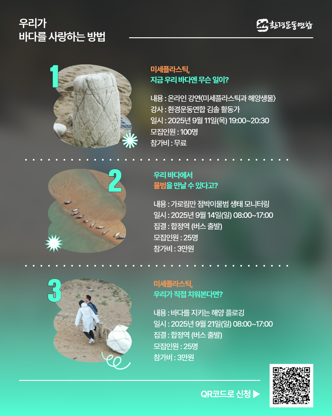 아래 프로그램에 함께 참여하시며, 우리가 바다를 사랑하는 방법을 직접 실천해보세요.