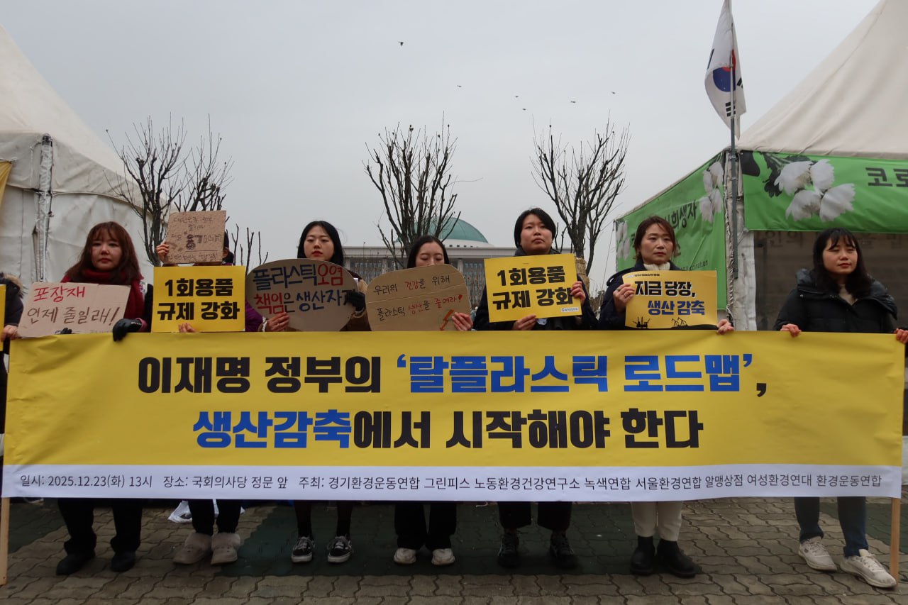 12월 23일, 탈플라스틱 종합대책이 발표되기 직전, 시민사회가 정부의 책임 있는 탈플라스틱 전환을 촉구하는 기자회견을 진행했다.