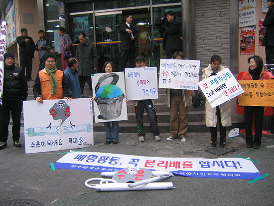 12월 24일(금) 오전 11시, 광주환경운동연합 회원10여명이 함께 한 가운데 광주우체국 앞에서 폐형광등 분리수거 및 배출 촉구 캠페인을 펼쳤습니다.