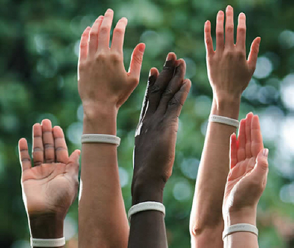 ‘Make Poverty History’ 캠페인의 상징이 된 흰색 팔찌. 어드보커시 전략의 일환이었던 흰색 팔찌는 캠페인에 대한 대중의 관심을 환기시켰고 시민의 참여를 유도했다.