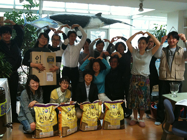 활동가들의 추첨을 통해 영광의 회원 다섯 분이 맛도 좋은 ‘이천쌀'(이천환경운동연합 의장님 후원)을 받게 되셨어요.