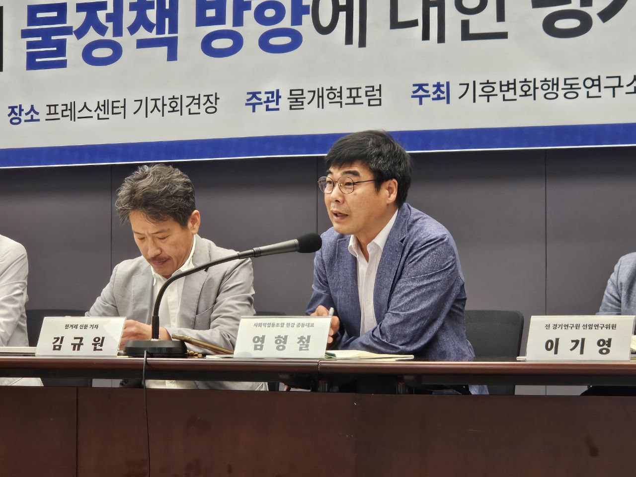지난 10월 2일 프레스센터 기자회견장에서 ‘이재명 정부의 물정책 방향에 대한 평가와 대응 방안’ 토론회가 개최됐다. 이번 토론회는 물개혁포럼이 주관하고 기후변화행동연구소가 주최하였으며, 한국수력원자력과 한국수자원공사의 후원으로 진행됐다. 이번 토론회는 국정기획위원회에서 마련하여 발표된 이재명정부의 5개년 계획안을 통해서 확인할 수 있는 이재명 정부의 물관리 정책방향에 대해서 검토하고 전문가와 시민사회의 평가와 대응 방안에 대한 공론의 장으로서 마련되었다.