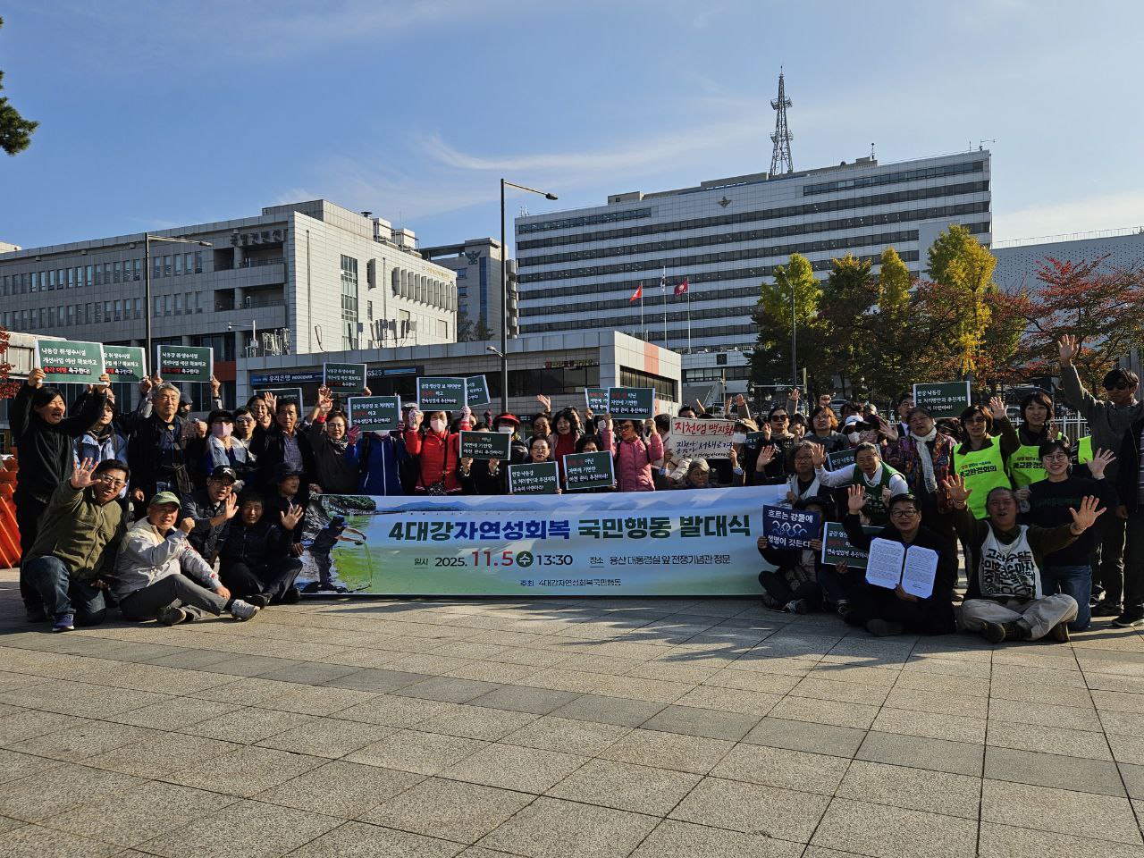 ○ 11월 5일 오후 1시 30분 용산 대통령실 앞에서 '4대강자연성회복국민행동'의 발대식이 개최됐다. 전국 201개 시민사회단체와 1,019명의 시민 참여자가 모여 발족을 선언한 4대강자연성회복국민행동은 이날 용산 대통령실 앞에 모여 이재명 정부에 4대강 자연성 회복 정책 추진을 촉구했다.