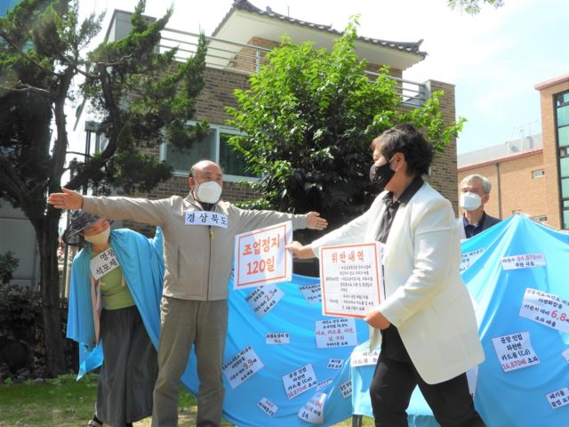 - 영풍석포제련소의 위법행위 진행 경과에 대해서는 임덕자 영풍공대위 공동집행위원장이 지적하였다. 그에 따르면 영풍제련소는 2018년 폐수 유출로 인한 조업정지 20일 처분 소송 중 이듬해인 2019년 환경부의 특별 점검에서 6가지 법령 위반으로 재차 발각되어 조업정지 120일 처분을 받았다. 그러나 경상북도는 제련소 청문요청, 환경부에 재질의, 법제처 유권해석 등 행정 처분을 미뤄오다가 지난 6월 10일 행정협의조정위원회에 조정신청을 제출하였다.