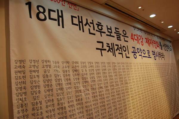 이에 18대 대선후보들에게 4대강 재자연화에 대한 명확한 입장 표명을 요구한다.
