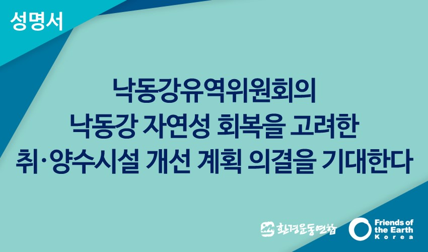 낙동강 유역 물관리 위원회가 이 선언을 제대로 지키는가는 그들의 첫 번째 책무인 취·양수시설 개선 계획안에 대한 심의 의결 결과로 가늠할 수 있을 것이다. 따라서 낙동강네트워크는 1300만 영남주민들의 식수인 낙동강을 살리는 취·양수시설개선 계획안을 원안 가결 할 것을 촉구한다.