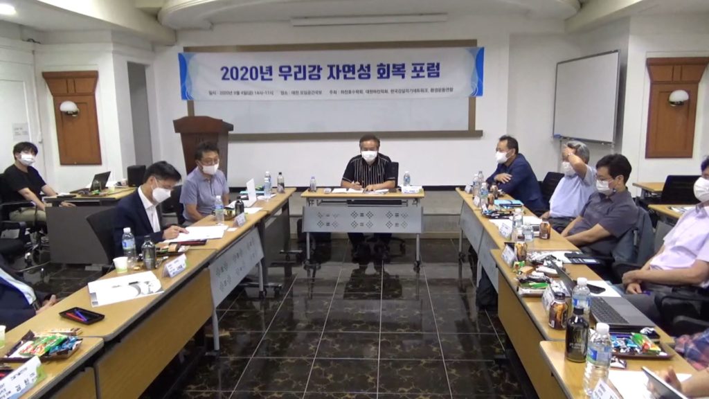 9월 4일 환경운동연합과 하천호수학회, 대한하천학회, 한국강살리기네트워크가 공동주최하는 ”2020년 우리강 자연성 회복 포럼”이 대전 모임공간 국보에서 열렸다. 이번 포럼은 이번 정부의 그린뉴딜 사업으로 우리강자연성회복, 낙동강 수질개선, 수생태 연결성, 다목적 천변저류지 등 다양한 프로젝트가 논의 중인 상황에서 우리 강의 자연성 회복과 수생태연결성 정책의 확대를 위한 사회적 공감대의 확산을 위해 개최되었다.