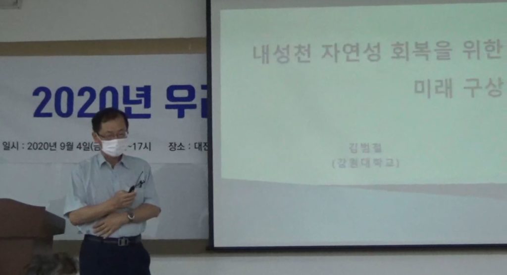 마지막으로 김범철 교수는 내성천 훼손의 가장 큰 이유로 직벽제방, 댐과 보와 같은 물리적 요인들을 꼽았다. 이러한 문제들을 개선하기 위해서 댐과 보를 철거하고 하천 폭을 넓히며 수처리제와 같은 약물들로 수질관리를 해야 할 것이라고 했다.