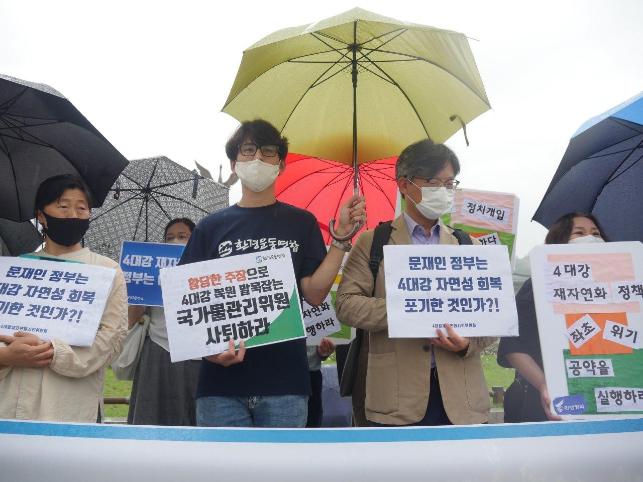 이상의 요구는 문재인 대통령이 국민과 한 약속에 근거한 것임을 분명히 밝힙니다. 부정했던 과거 정부의 4대강 사업은 정책실패, 부패토목공사의 전형입니다. 4대강 재자연화가 문재인 정부의 성공과 정체성의 기준이 될 것임을 엄중히 경고합니다.