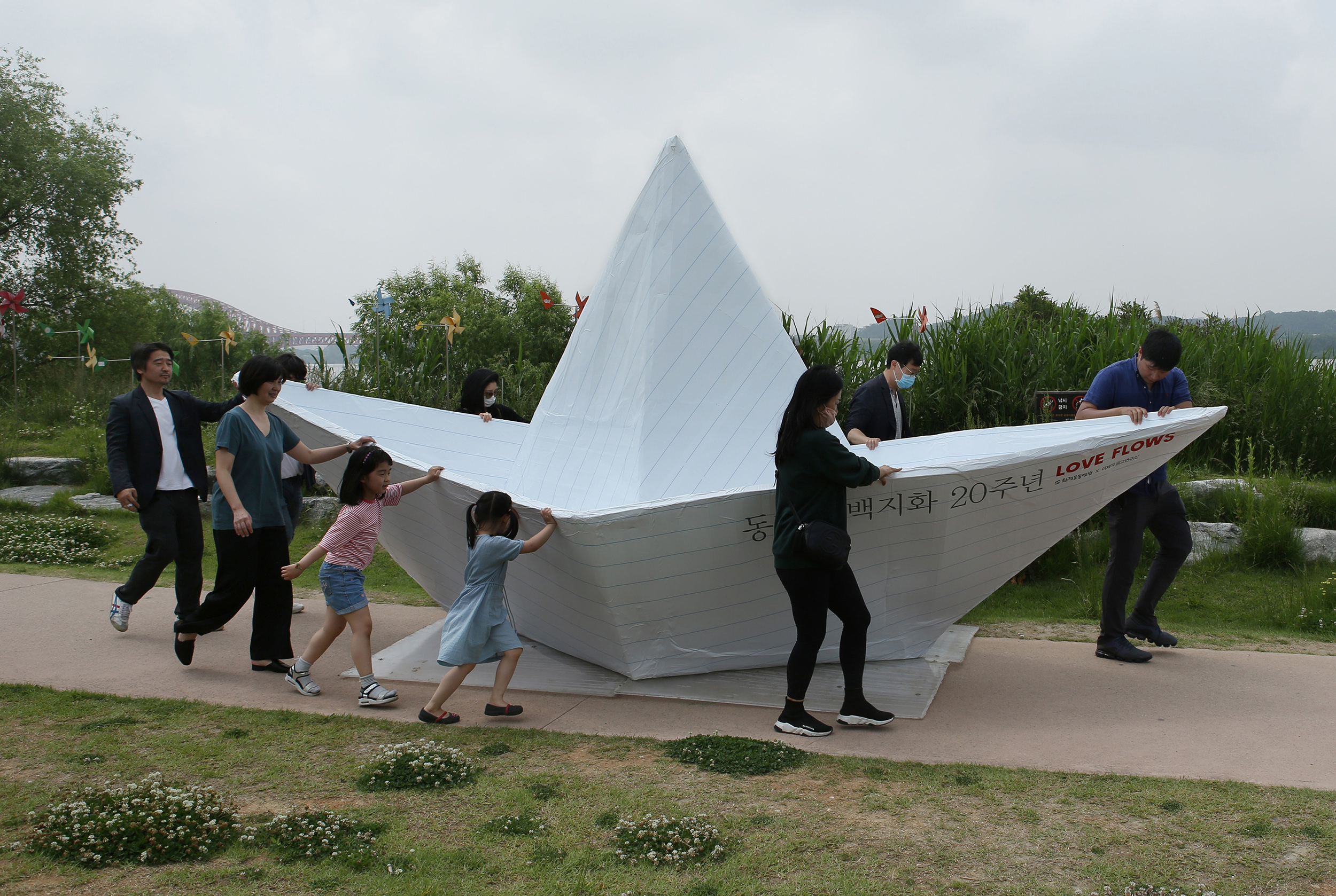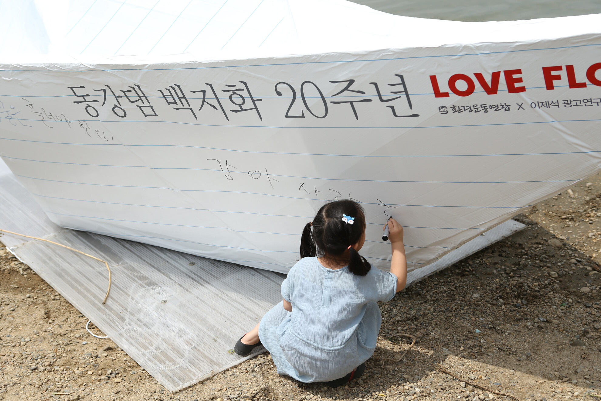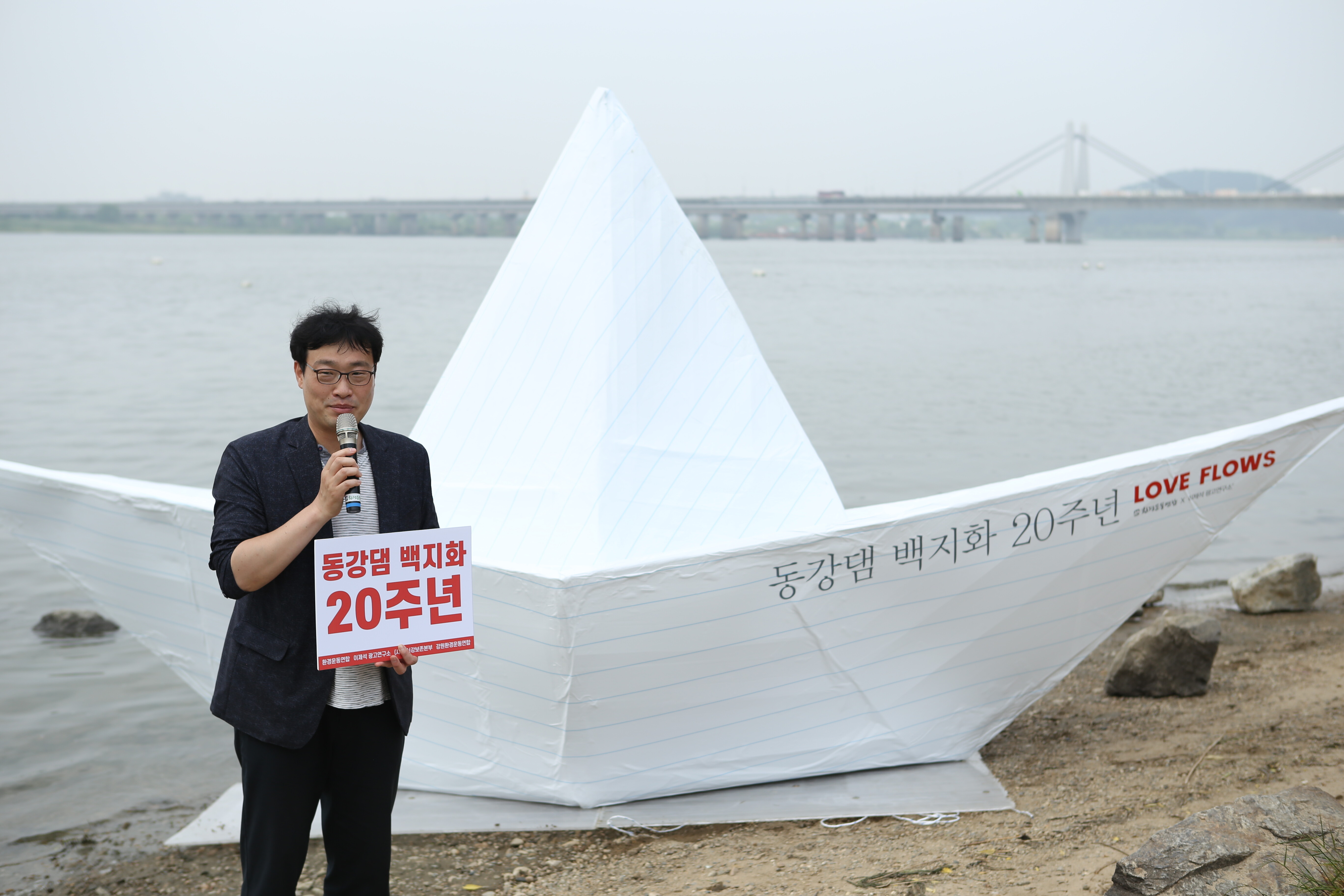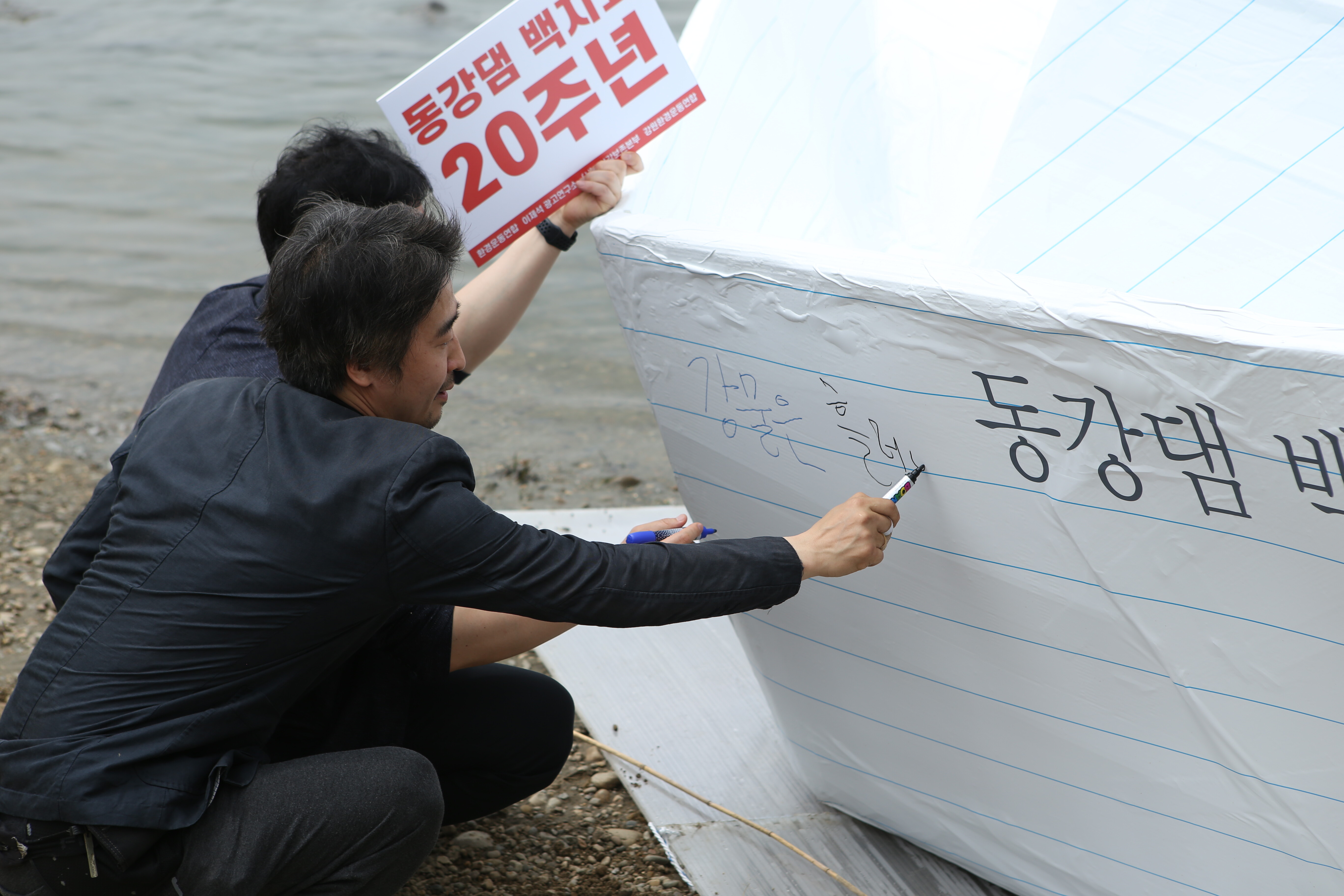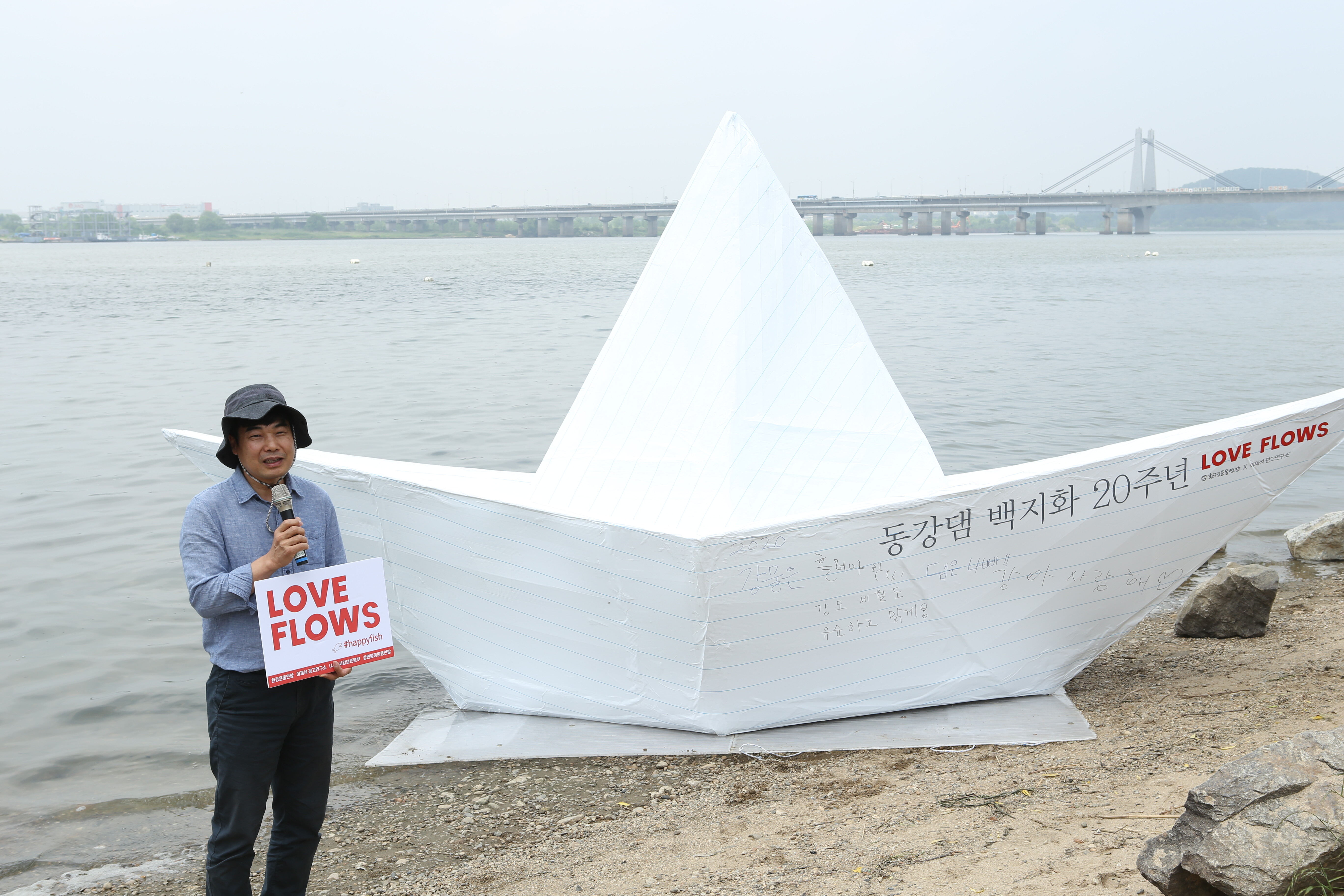 동강댐 백지화 20주년 기념, 한강에 뜬 대형 손 편지 종이배