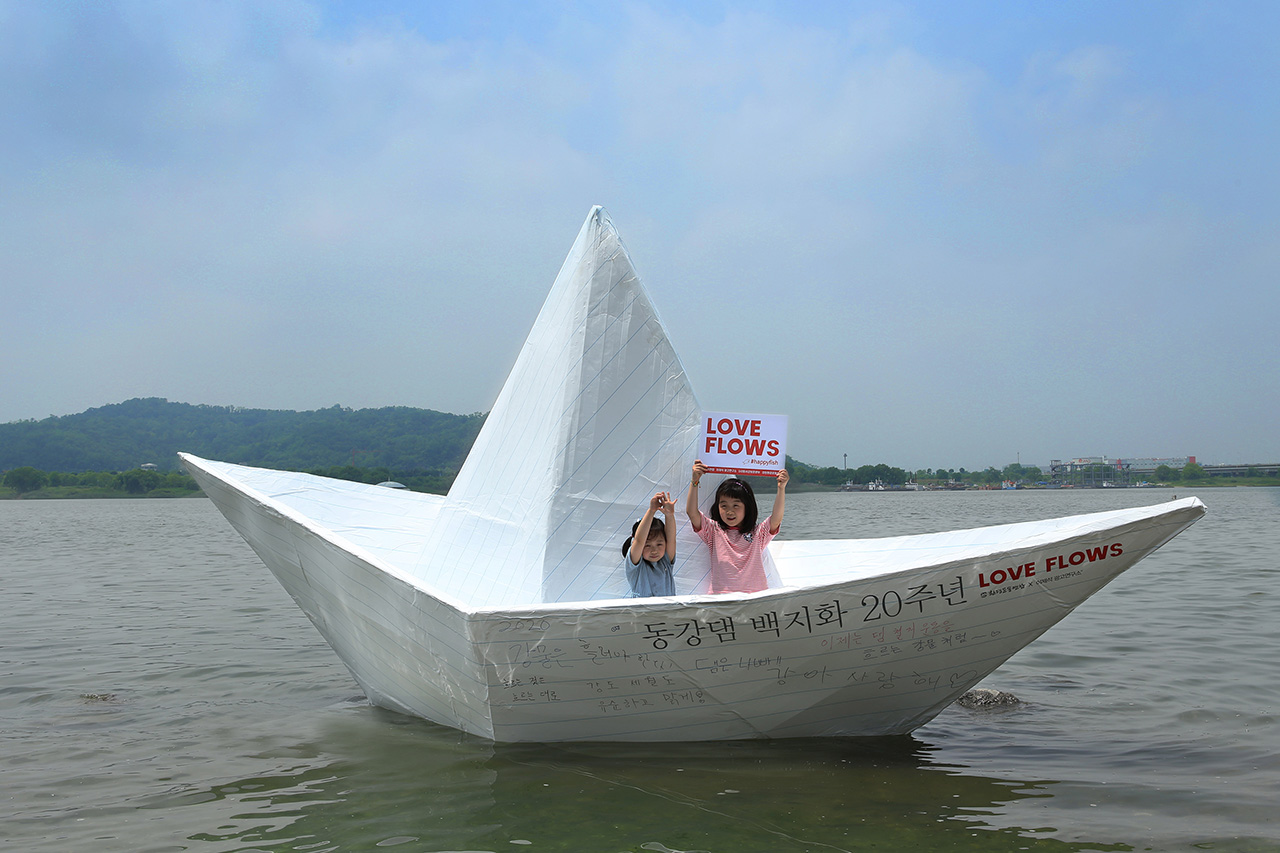 물·하천[사진 보도자료] 동강댐 백지화 20주년 기념, 한강에 뜬 대형 ‘손 편지 종이배’
