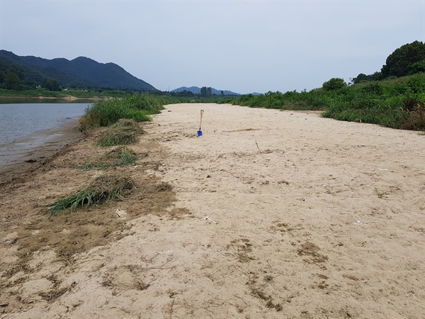 겉보기에는 예전의 모습으로 돌아가는 것처럼 보이지만, 10년 전의 모래톱은 아니다. 아직도 강변에선 시큼한 냄새가 가시지 않고 있다. 풀도 자라고 있다. 4대강사업 이후에 쌓인 펄들이 완전히 씻겨 내려가지 못해서 생기는 현상이다. 풀들이 모래 속에 남은 펄에 뿌리를 박고, 그곳에서 수분과 양분을 공급받으면서 무럭무럭 자라고 있는 것이다.