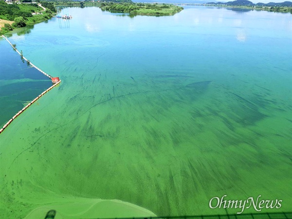 ▲ 8월 13일 오전 낙동강 창녕함안보 녹조. ⓒ마산창원진해환경연합 임희자